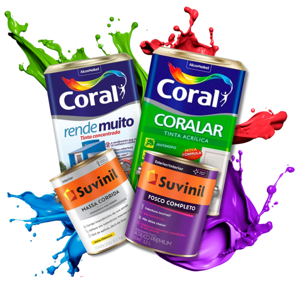 Oferecemos uma grande variedade de produtos, incluindo tintas emborrachadas, massa para efeito especial cimento queimado, e outras tintas de marcas renomadas como Suvinil e Coral.